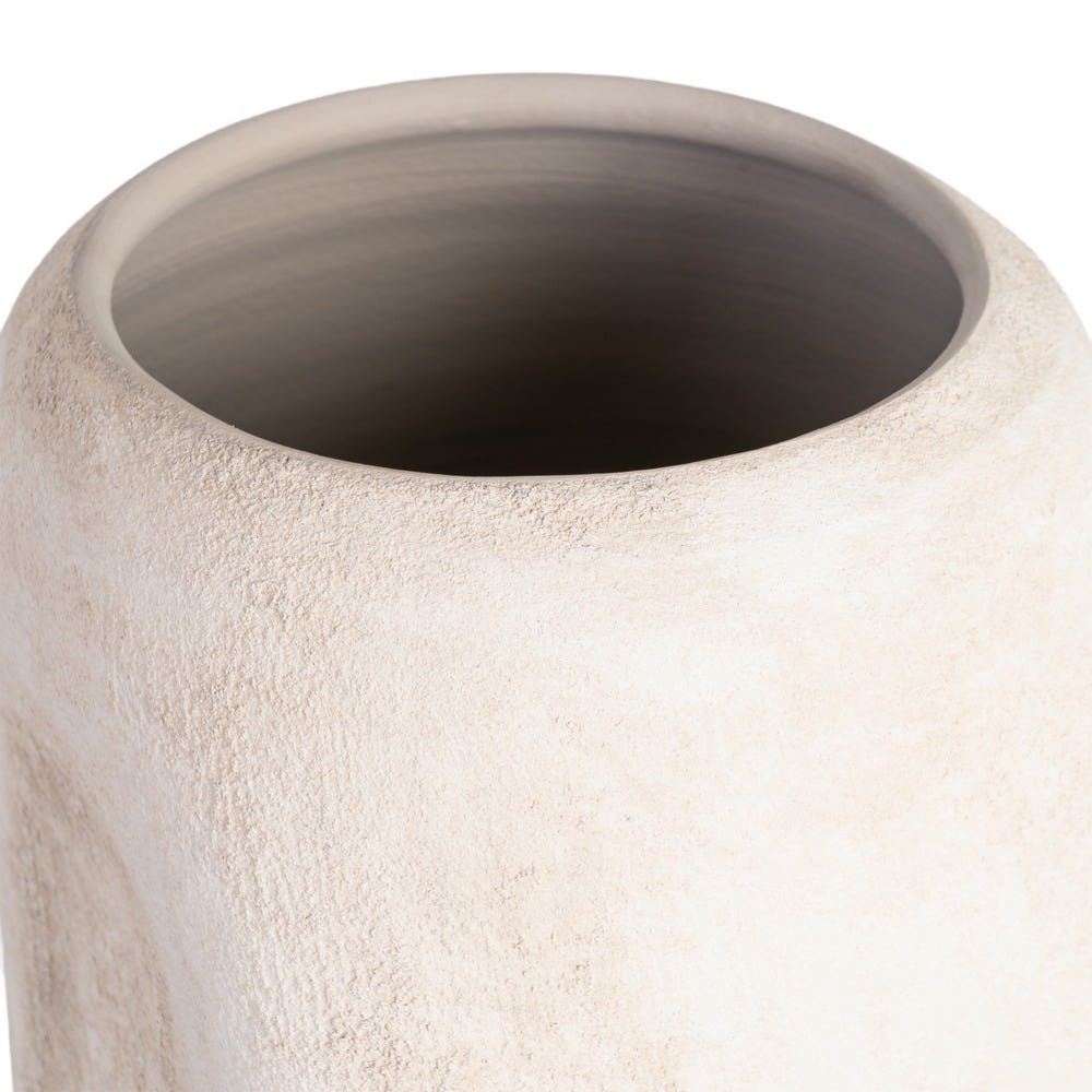 Datorită proporțiilor sale verticale, această vază decorativă se potrivește perfect așezată direct pe podea sau lângă o piesă de mobilier. Nuanța crem contribuie la o atmosferă calmă și luminoasă, integrându se ușor în diferite tipuri de amenajări interioare.
