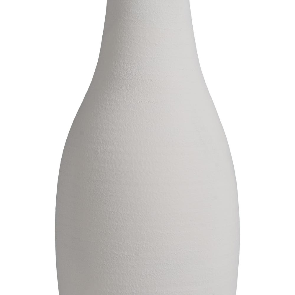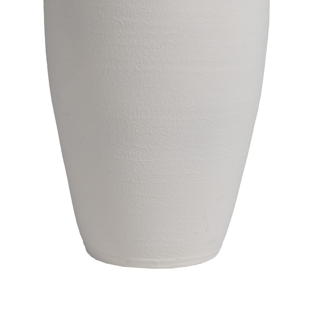 Vaza este realizată manual din lut alb, un material natural care oferă piesei un aspect autentic și o textură mată elegantă.