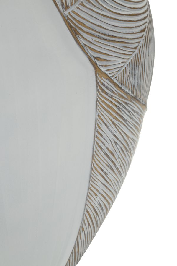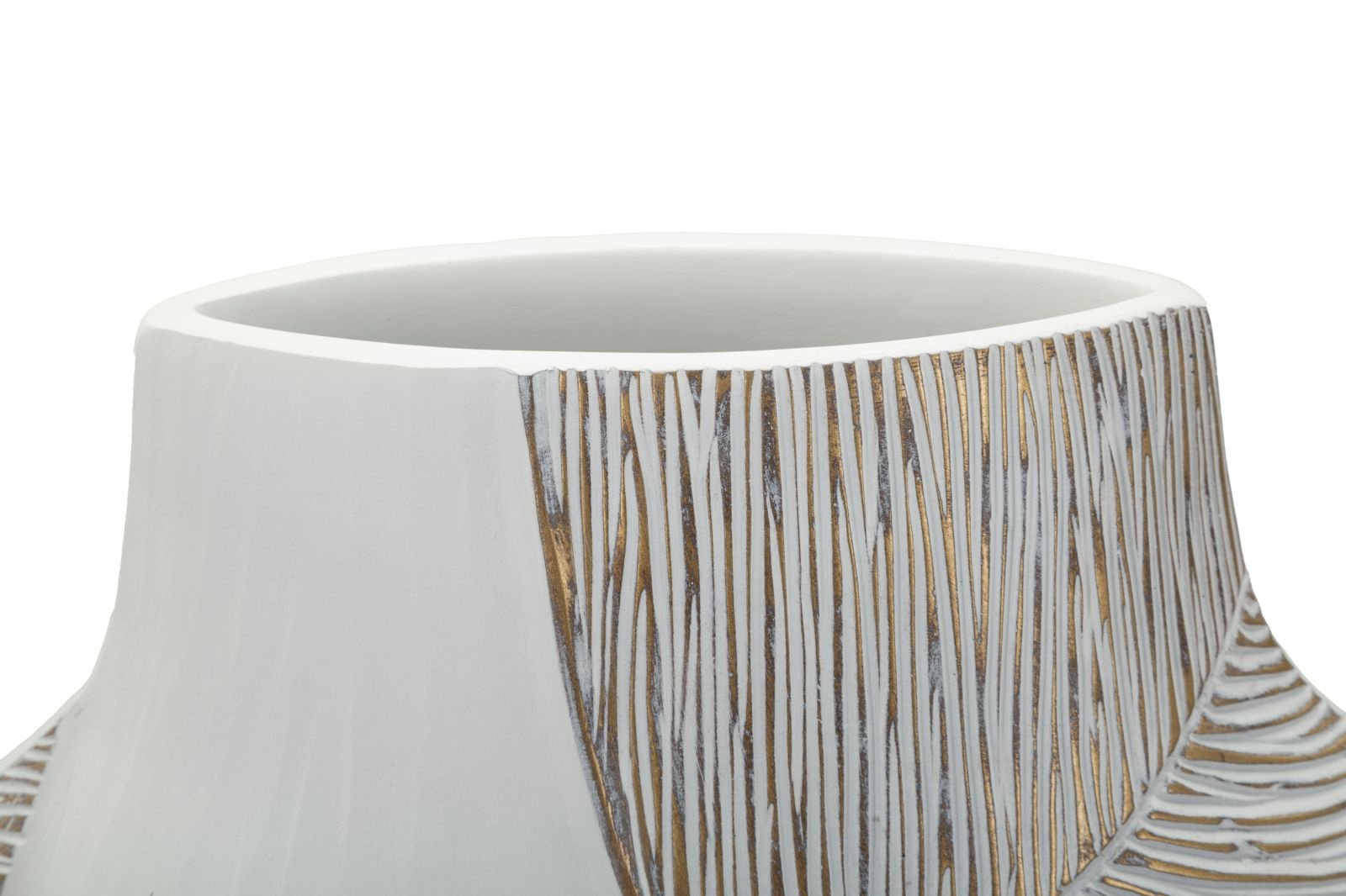 Designul său combină suprafețe netede cu zone decorate prin linii fine reliefate, dispuse pe forme curbe ce par să se îmbrățișeze. Contrastul dintre partea simplă și cea texturată creează profunzime vizuală, iar nuanța caldă alb-bej evidențiază detaliile cu un efect elegant și natural.