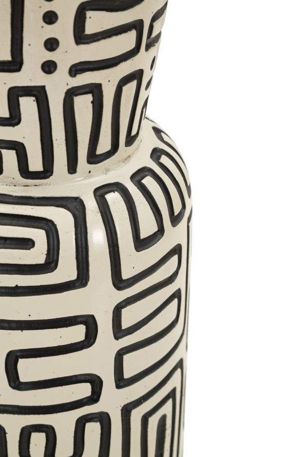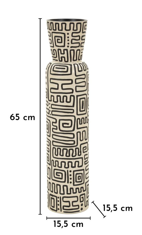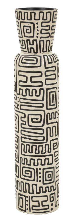 Vază alb și negru din rășină cu decor geometric tribal Nairobi 15.5x65 cm
