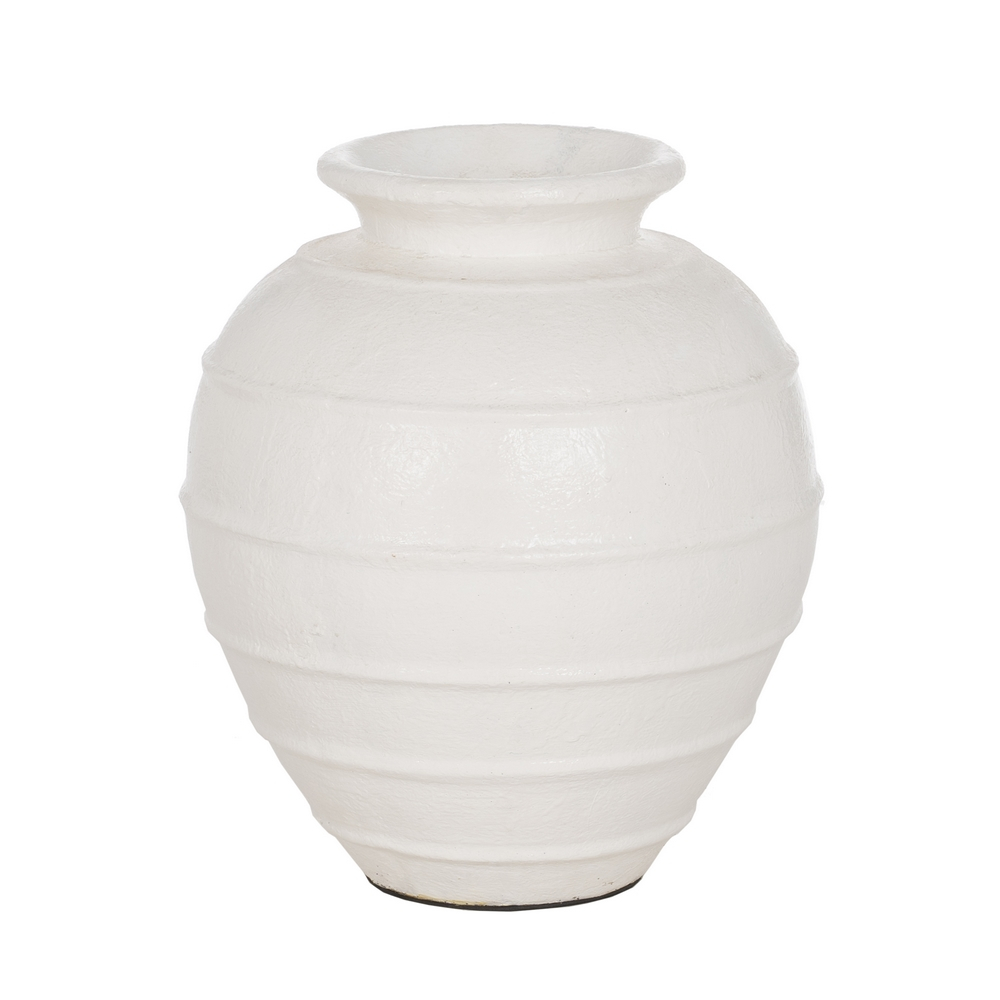 Aceasta vaza decorativa alba este realizata din fibrociment, un material durabil si modern, ideal pentru spatii cu accente naturale sau industriale. Cu dimensiuni de 45 cm latime, 45 cm lungime si 51 cm inaltime, piesa se potriveste perfect in amenajari aerisite, holuri elegante sau birouri contemporane. Suprafata texturata si forma echilibrata creeaza un efect vizual placut, integrandu-se armonios in decorurile actuale. Vaze moderne si rezistente pentru interioare rafinate doar la CreativDeco