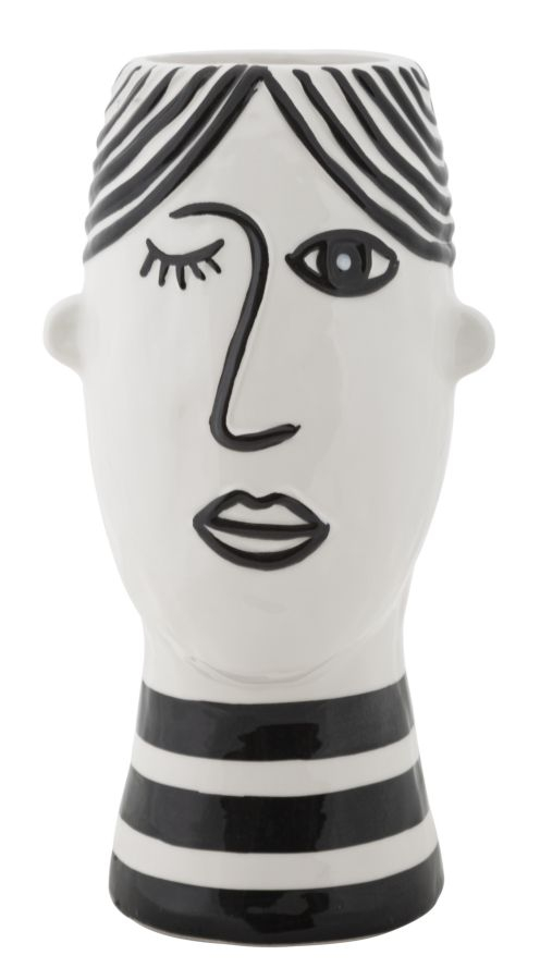 Vaza din porțelan, cu dimensiunile de 13,2 cm lățime, 11,8 cm adâncime și 26,3 cm înălțime, se remarcă prin designul său artistic și modern. Cu un stil inspirat de arta abstractă, această vază adaugă un element de originalitate și personalitate în orice decor interior. Detaliile alb-negru și forma sa unică, care evocă un chip stilizat, transformă această piesă într-un adevărat obiect de artă. Ideală pentru a adăuga un accent creativ într-un spațiu contemporan, vaza este perfectă atât ca obiect decorativ singular, cât și pentru a completa un aranjament floral deosebit. Această piesă din porțelan de înaltă calitate aduce un plus de rafinament și originalitate în orice locuință.