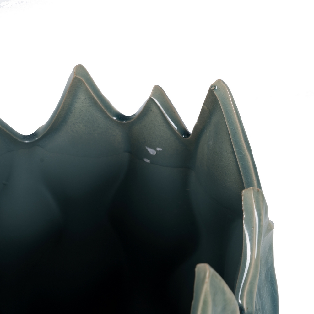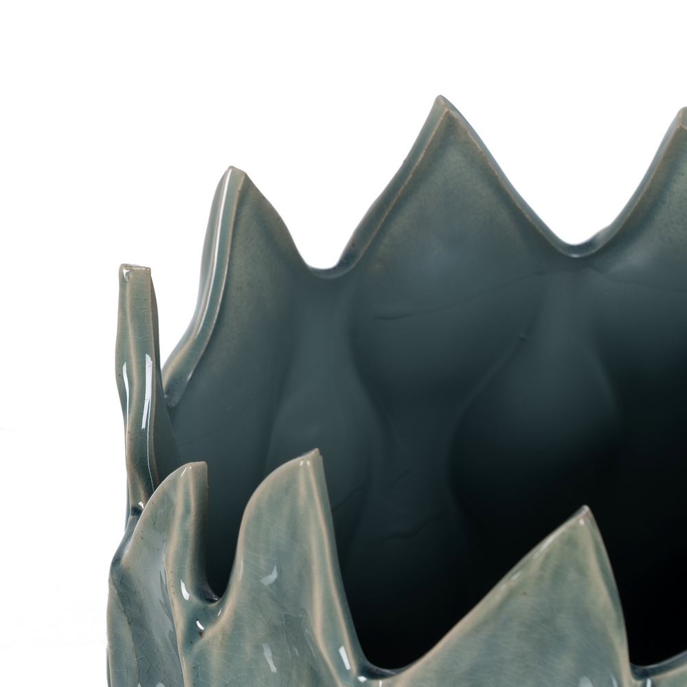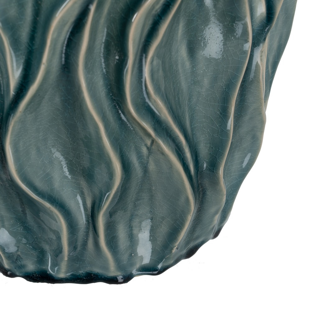 Vaza ceramica albastra cu design expresiv si deschidere generoasa, ideala pentru buchete mari si decoruri de impact