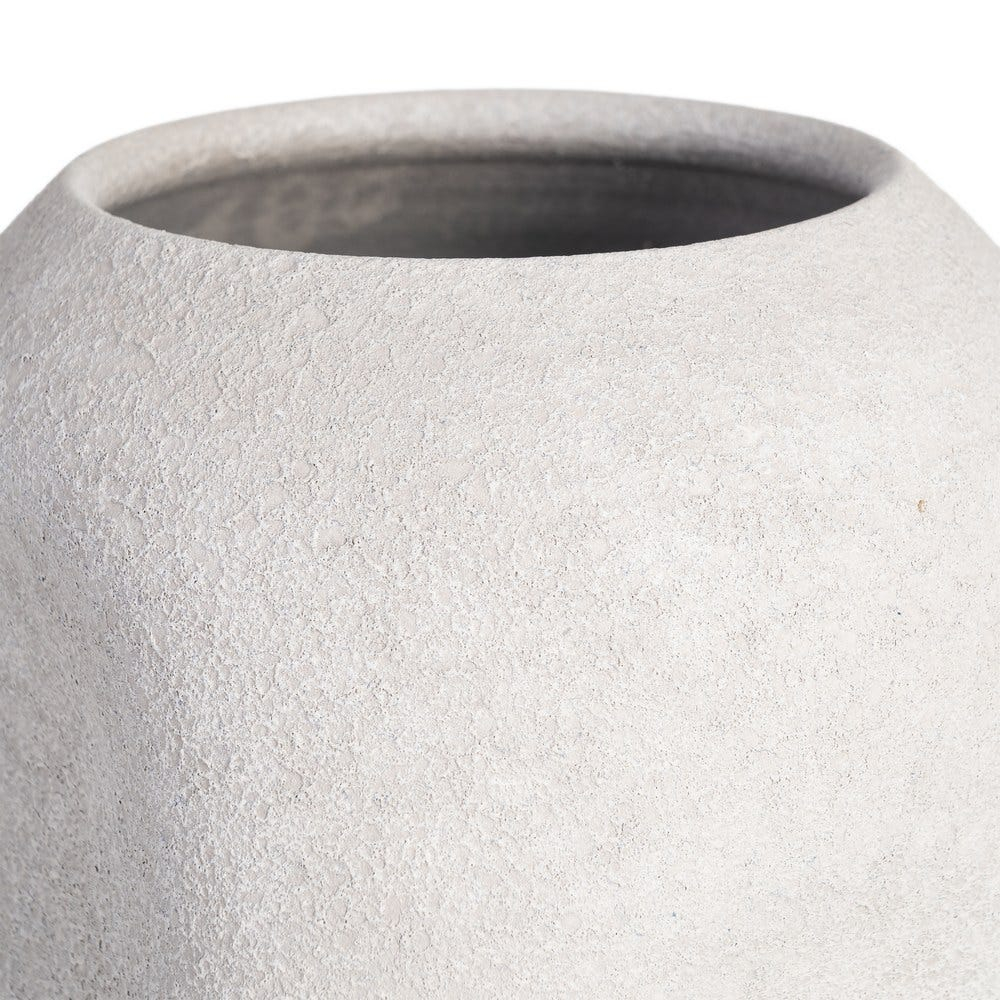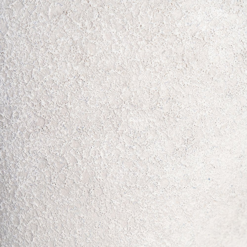 Designul vazei este definit de o formă cilindrică ușor rotunjită, cu o deschidere discretă în partea superioară. Suprafața ceramică prezintă o textură fină care oferă profunzime vizuală și un aspect natural piesei.