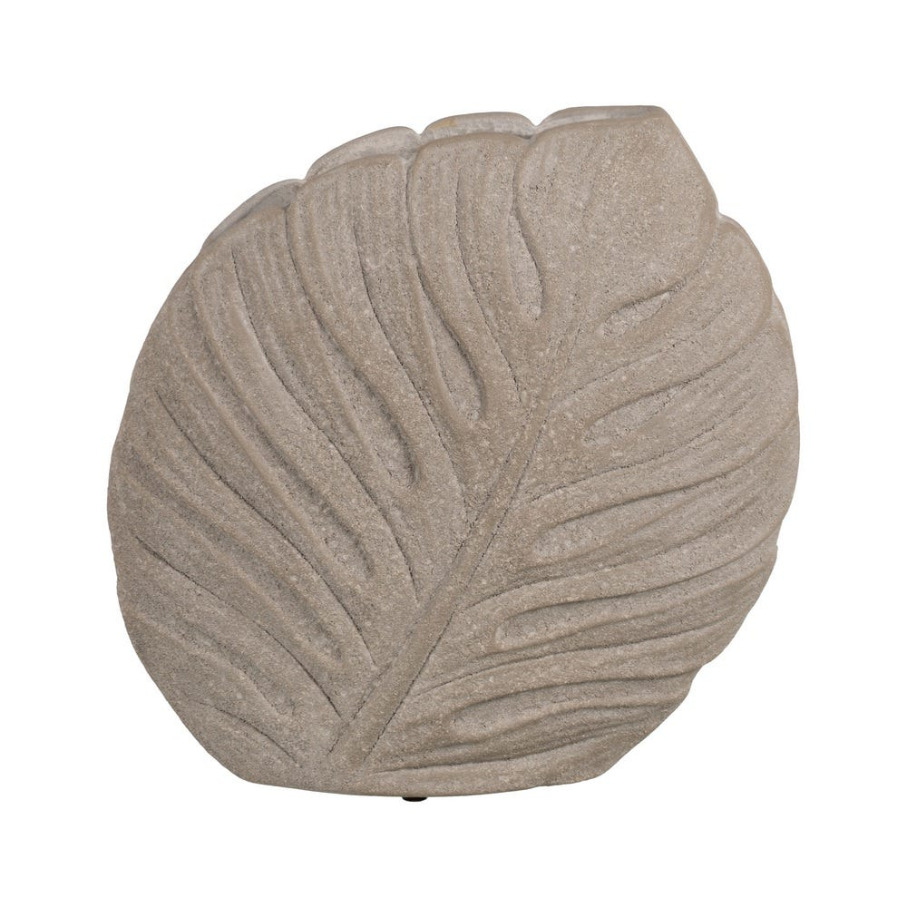 Designul vazei reproduce forma unei frunze mari, evidențiată prin nervuri decorative care se întind pe întreaga suprafață. Textura ceramică și finisajul cu aspect natural accentuează liniile organice și oferă profunzime vizuală piesei.