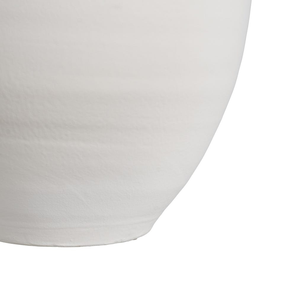Vaza este realizată manual din lut alb, un material natural care oferă piesei un aspect autentic și o textură mată elegantă.