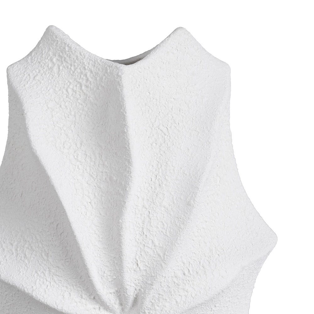 Vaza are un design ondulat cu suprafață reliefată, care creează un efect decorativ de valuri și umbre pe întreaga piesă.