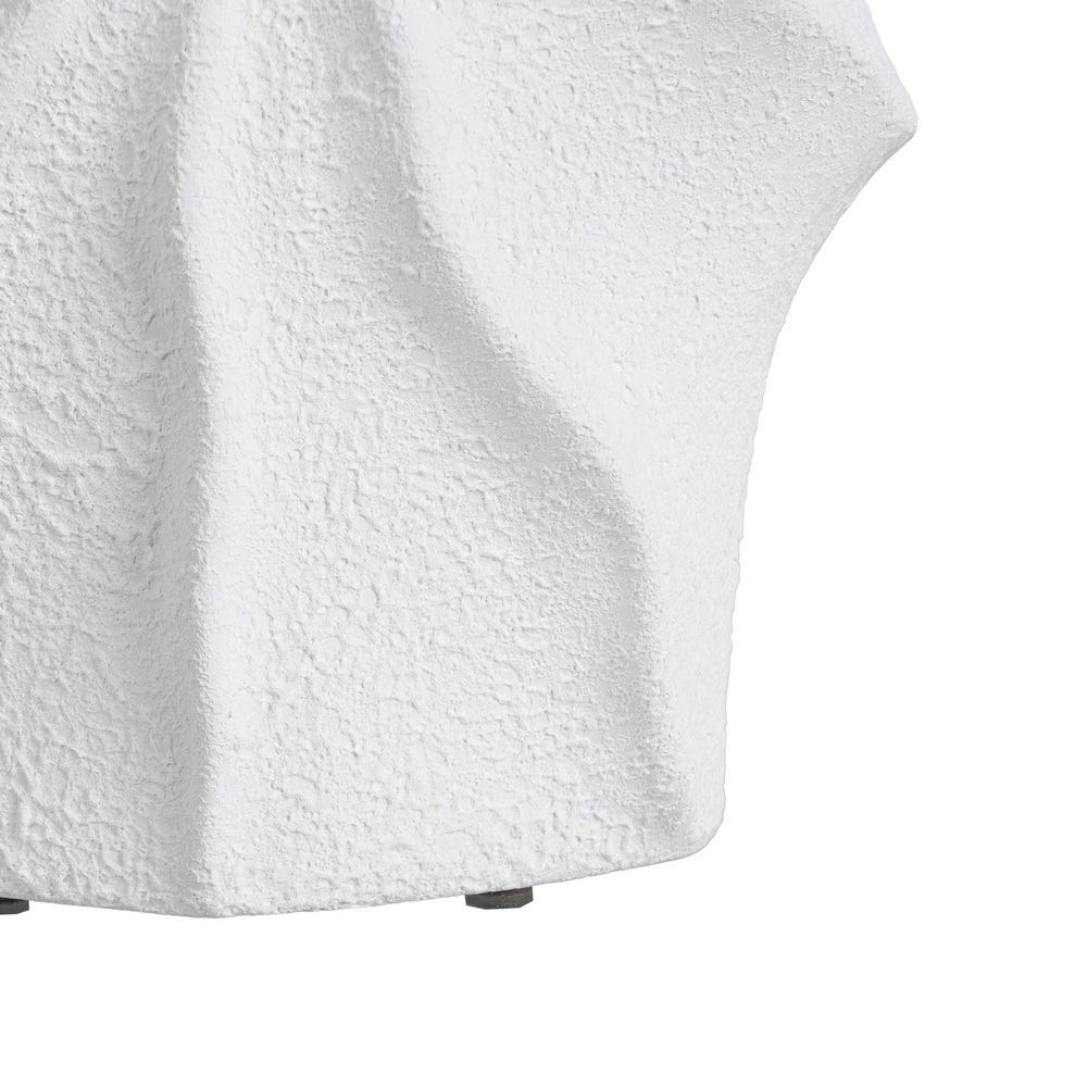 Vaza este realizată manual din lut alb, un material natural care oferă piesei un aspect autentic și o textură mată elegantă.