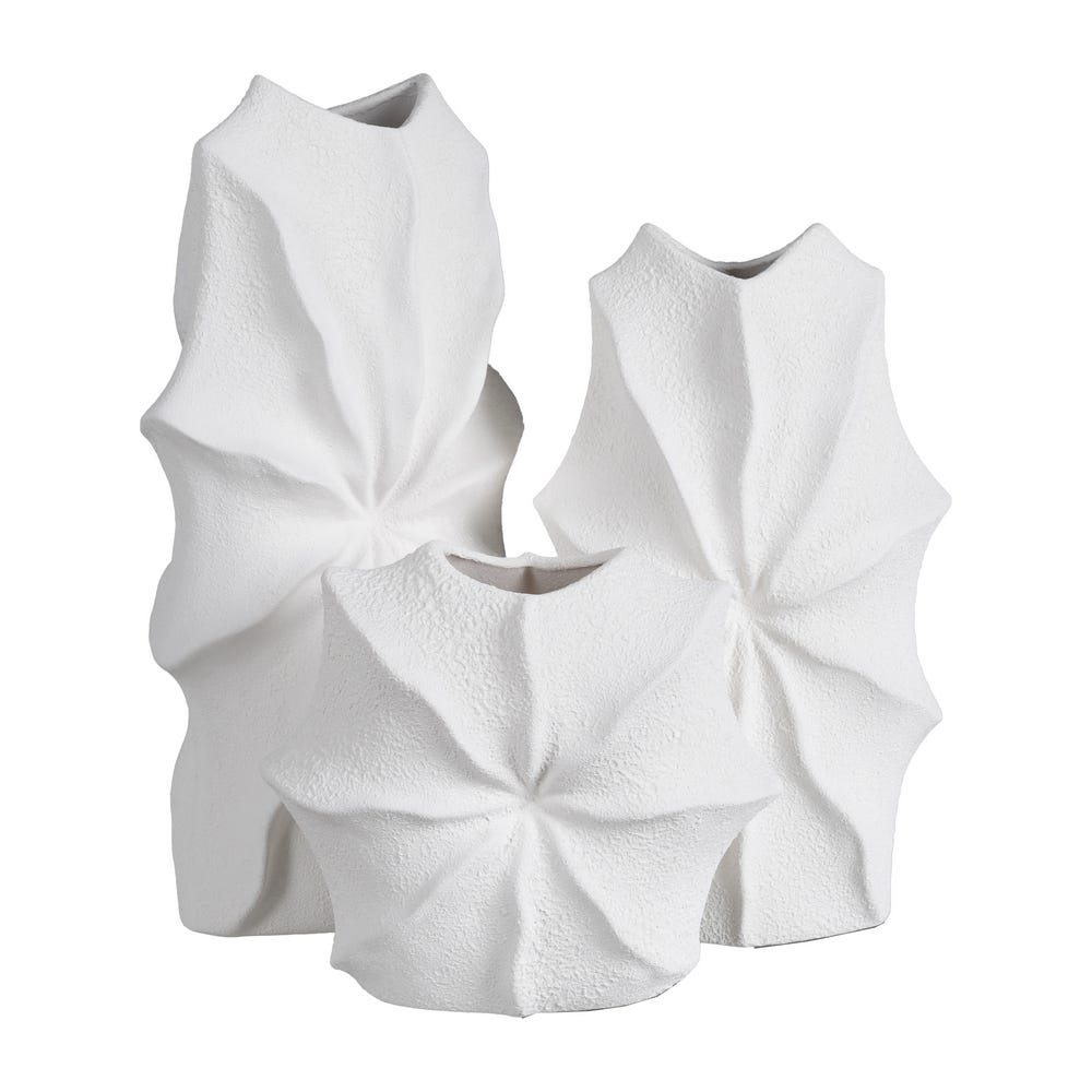IXIA Vază decorativă din lut alb realizată manual cu formă ondulată 22x15x38 cm