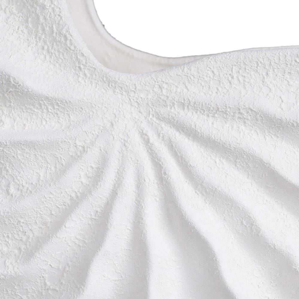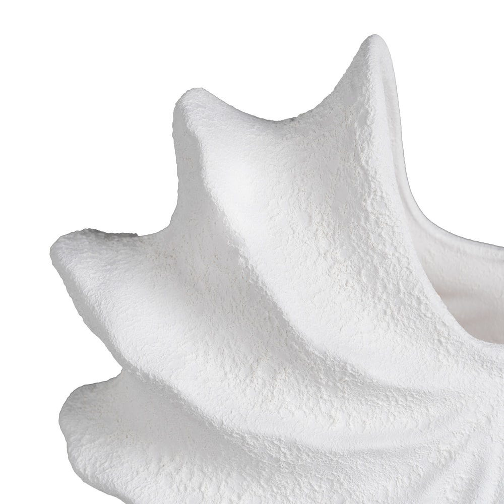 Vaza are un design sculptural inspirat din forma unei scoici, cu nervuri reliefate care creează un efect decorativ elegant.