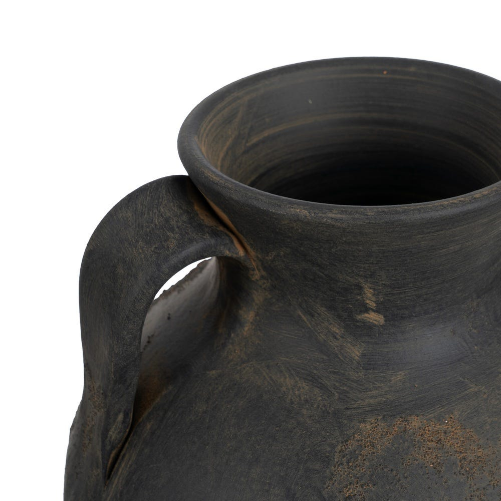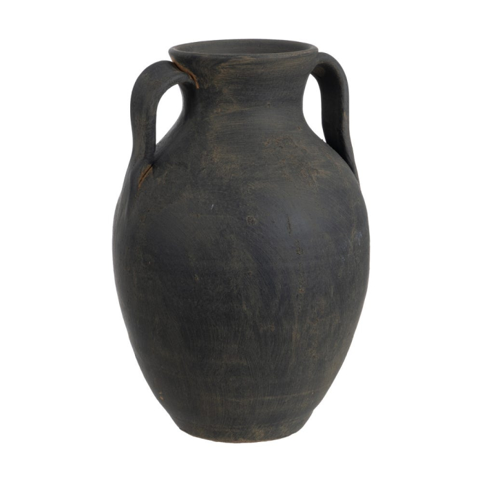 Această vază decorativă din lut gri aduce un plus de naturalețe și autenticitate în orice spațiu și se integrează ușor în amenajări calde și echilibrate. Forma sa rotunjită este completată de două toarte laterale, care oferă un detaliu decorativ plăcut și un aspect armonios.