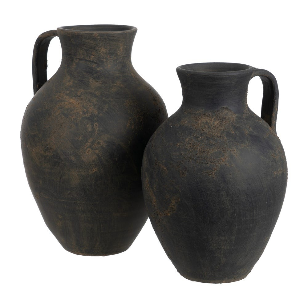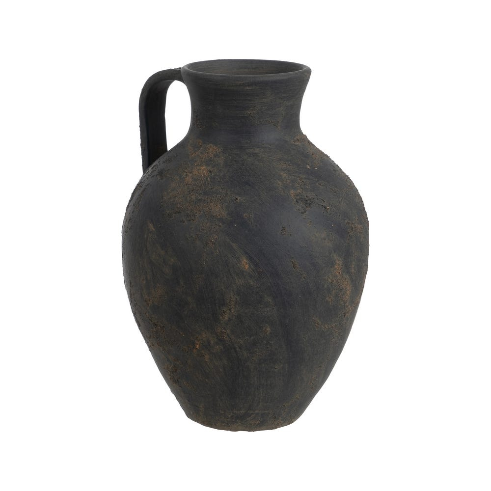 Această vază decorativă din lut gri aduce un plus de naturalețe și autenticitate în orice spațiu și se integrează ușor în amenajări calde și echilibrate. Forma sa rotunjită este completată de o toartă laterală, care oferă un detaliu vizual plăcut și un aspect armonios.