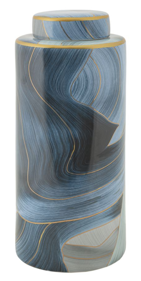 Descoperă această vază decorativă din ceramică, având dimensiunile 15 cm lățime, 15 cm lungime și 34 cm înălțime, este prevăzută cu un capac elegant, perfect integrat în designul său sofisticat. Liniile fluide, împreună cu accentele aurii, creează un aspect modern și luxos, ideal pentru interioare contemporane. Această piesă unică este ideală pentru a completa decorul unei sufragerii, aducând un aer proaspăt și elegant în orice spațiu. Obține decorul de vis doar la CreativDeco.