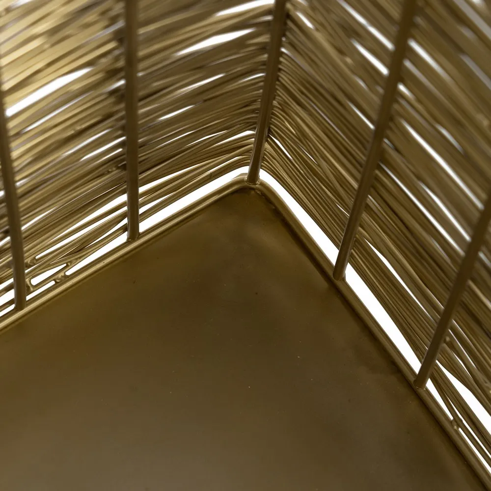 Vază decorativă elegantă din fir auriu de inox, cu un design inspirat de pânza de păianjen, ce aduce o notă de rafinament oricărui spațiu. Acest produs de înaltă calitate, importat de CreativDeco, este perfect pentru a expune flori proaspete sau uscate. Vazele decorative cu design unic pot fi utilizate pentru a crea un accent vizual captivant în dormitor, birou sau pe rafturile bibliotecii.