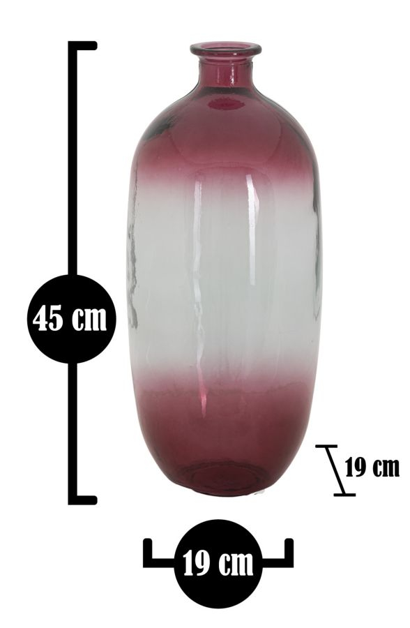 Această vază din sticlă reciclată, cu dimensiunile de 19 cm lățime și 45 cm înălțime, aduce un plus de eleganță prin combinația sa de culori în degrade, de la transparent la un vișiniu profund. Forma sa simplă și curată, împreună cu efectul subtil de gradient al culorilor, o transformă într-un punct de atracție în orice decor interior. Ideală pentru expunerea aranjamentelor florale sau ca element decorativ de sine stătător, această vază oferă o notă de sofisticare și sustenabilitate, fiind perfectă pentru interioarele moderne și rafinate. Alegerea sa va aduce un strop de culoare și eleganță în orice încăpere.