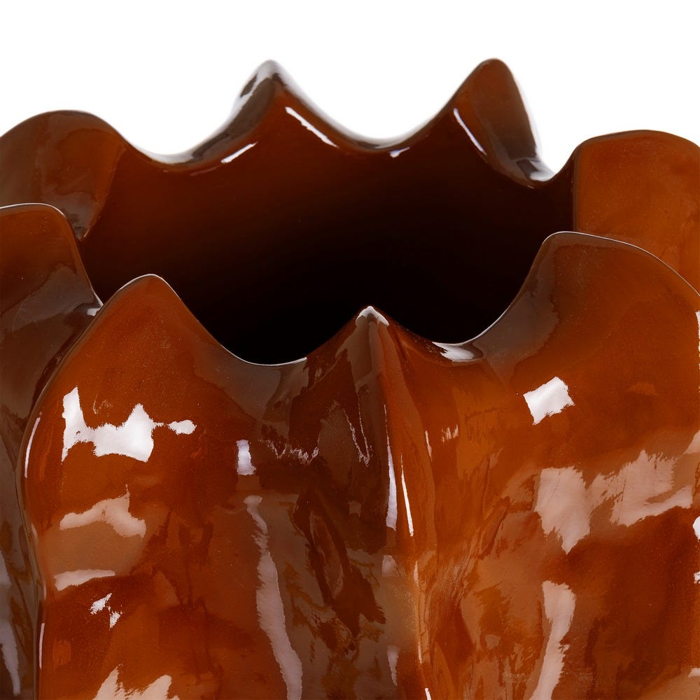 Vază din ceramică teracotă lucioasă cu siluetă înaltă ondulată și deschidere de 19 cm 31 x 31 x 70 cm