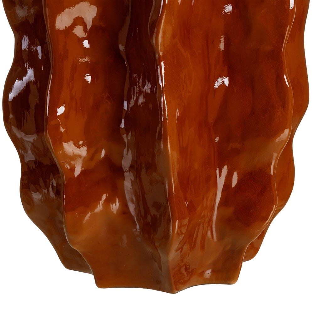 Vază din ceramică teracotă lucioasă cu profil înalt și panouri ondulate, gândită ca piesă-accent pentru decor contemporan și organic modern, potrivită în living, hol sau dining.