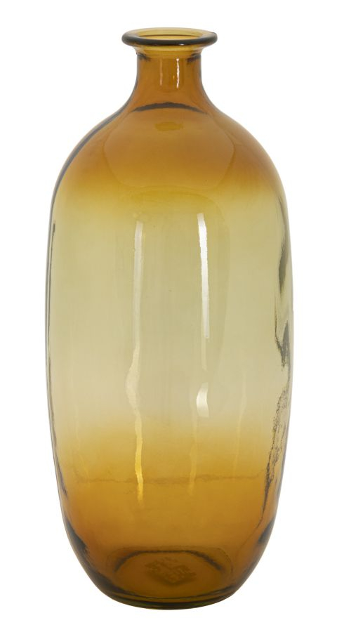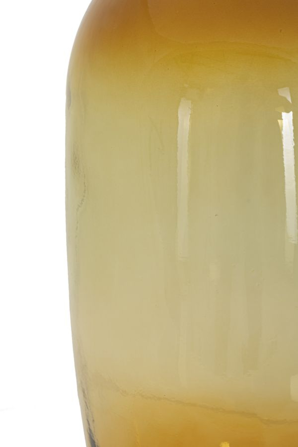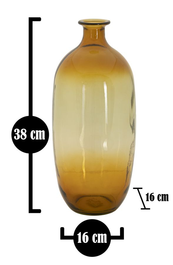Cu dimensiunile de 16 cm lățime și 38 cm înălțime, această vază din sticlă reciclată impresionează prin eleganța sa simplă și paleta de culori calde, în nuanțe de chihlimbar. Forma sa rotunjită și finisajul gradient creează un efect vizual armonios, aducând un strop de căldură și rafinament în orice spațiu interior. Vaza este perfectă pentru a expune flori delicate sau ca piesă decorativă singulară, adăugând un element de stil și sustenabilitate în decorul casei tale. Ideală pentru interioare moderne, această vază combină frumusețea naturală a sticlei reciclate cu un design atemporal.