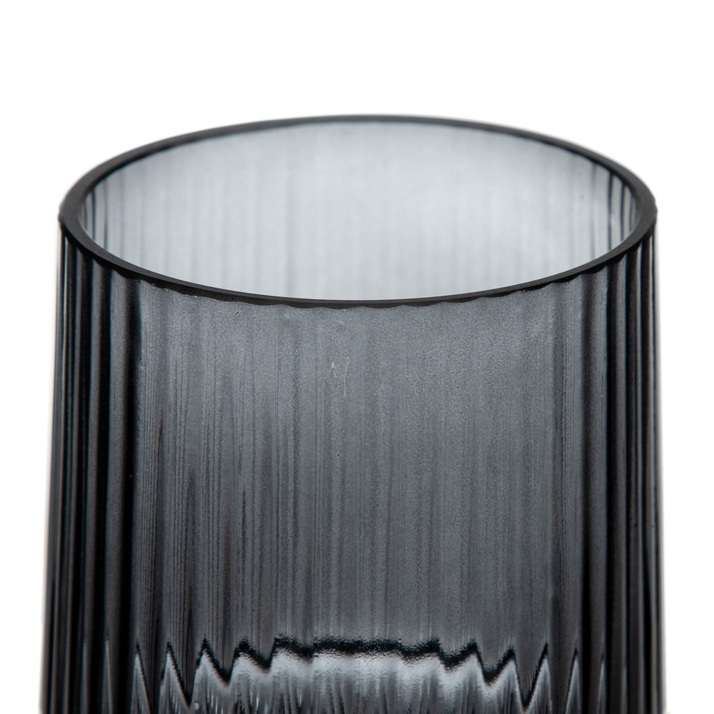 Vază din sticlă gri cu detalii geometrice, ideală pentru a adăuga un accent vizual în decoruri moderne sau contemporane. Perfectă pentru orice cameră.