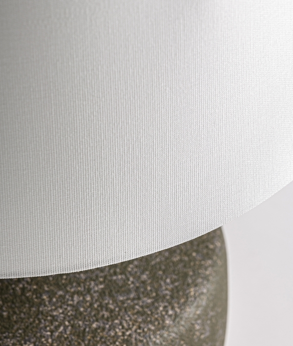 Baza ceramică în nuanțe de verde măsliniu cu efect texturat oferă lămpilor o estetică unică, îmbinând naturalețea cu accente contemporane. Finisajul distressed adaugă un plus de caracter, creând o piesă decorativă expresivă, ideală pentru spațiile ce caută detalii subtile dar cu personalitate.