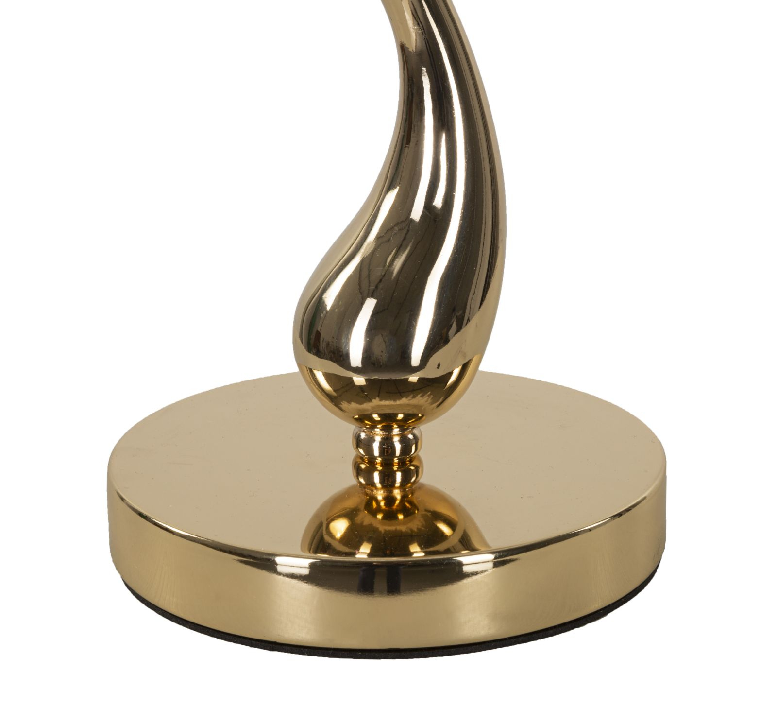 Veioză aurie cu abajur din pene albe, creând un iluminat mistic și texturat. Această lampă de masă versatilă funcționează excelent ca corp de iluminat pentru dormitor sau ca accesoriu decorativ în birou, oferind o ambianță unică.