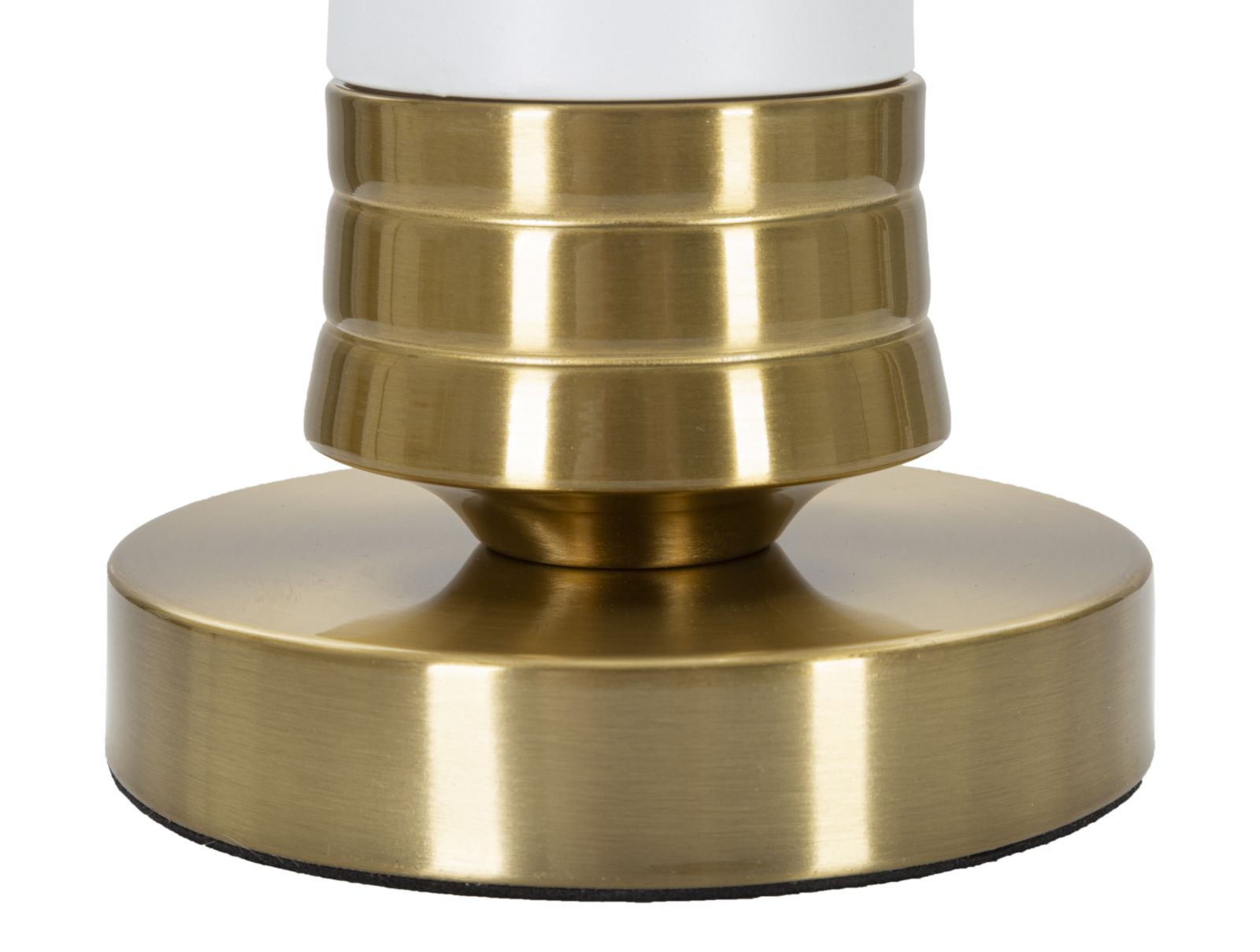 Bucurați-vă de eleganța clasică a acestei veioze cu baza din metal aurit și portelan alb, completată de un abajur textil alb cu detalii aurii. Această veioză adaugă un element sofisticat și luminozitate oricărui spațiu. Perfectă pentru a completa designul interior al casei dumneavoastră sau pentru a oferi un cadou rafinat cuiva drag. Nu ratați ocazia de a aduce un strop de rafinament în locuința dumneavoastră!