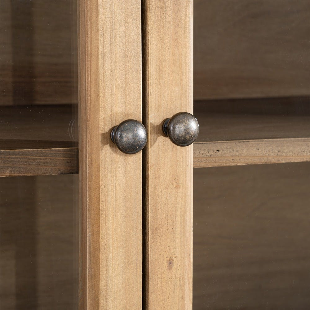 Ușile din sticlă permit vizibilitatea obiectelor expuse pe rafturi, protejând în același timp conținutul și contribuind la un aspect elegant și aerisit al piesei.